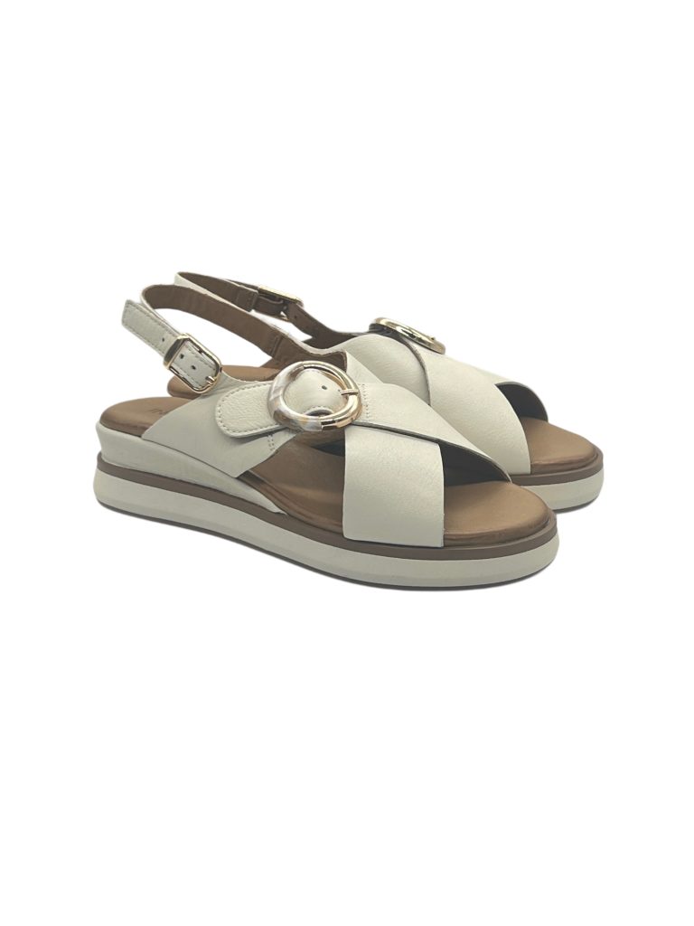 Sandalo donna Inuovo fascie incrociate e fibbia-Crema