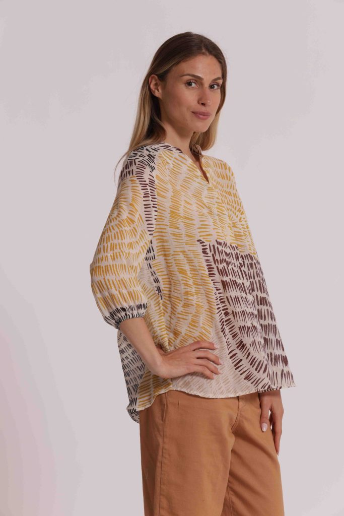 Blusa in fantasia graffio-Marrone/ocra