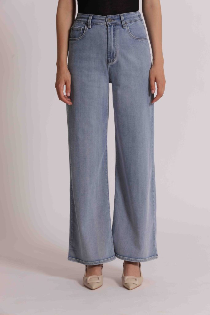 Pantalone Jeans a palazzo con elastico-Blu chiaro