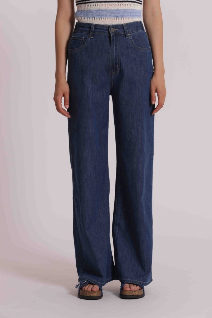 Pantalone Jeans a palazzo con elastico-Blu