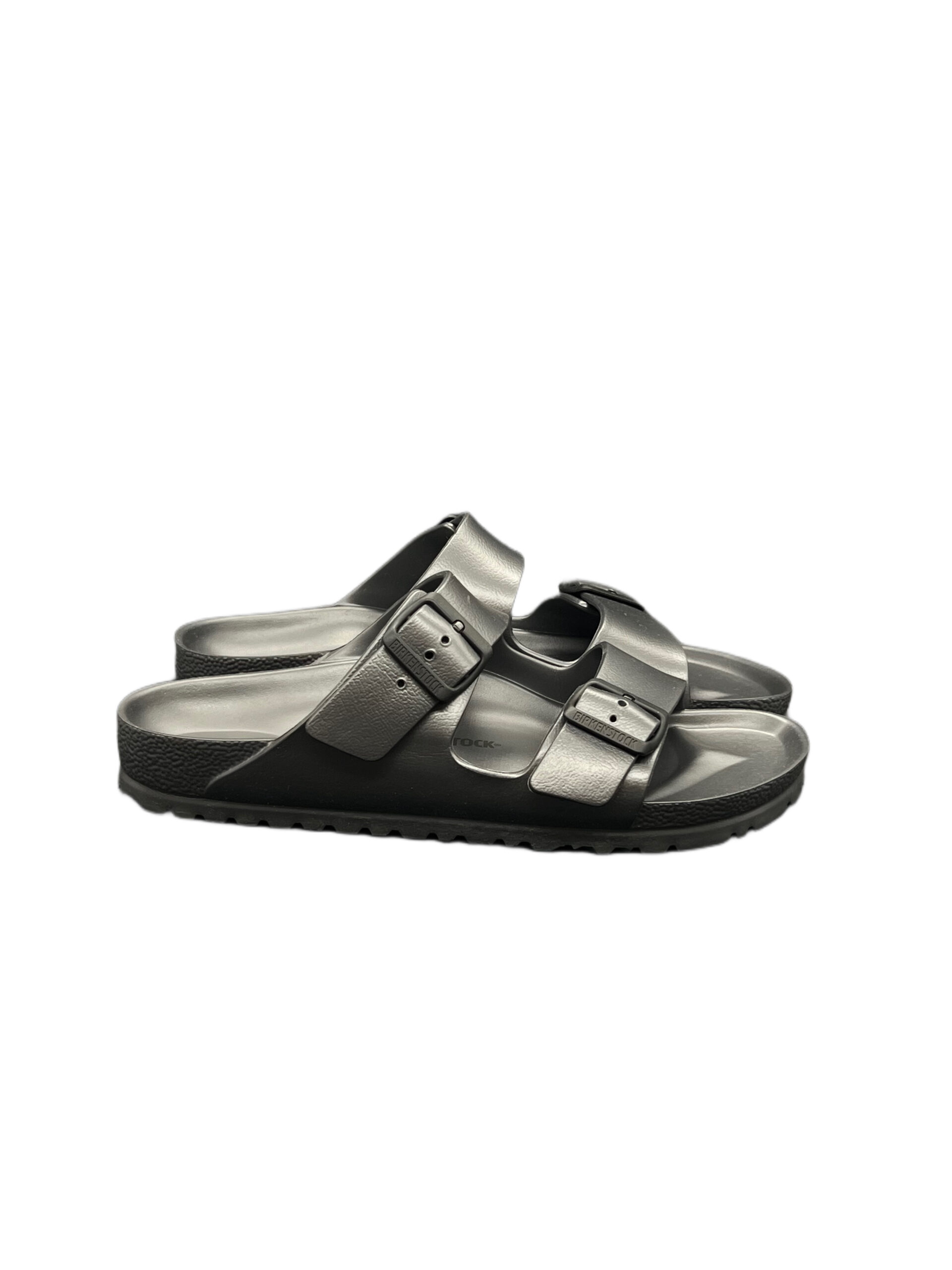 Il sandalo BIRKENSTOCK Arizona Eva Antracite è un vero classico. Ispirato allo sandalo in sughero, questo modello è realizzato in EVA. Il materiale plastico EVA è di alta qualità, non ha odore o sostanze inquinanti e porta molte caratteristiche positive: è molto leggero, altamente elastico, articolo impermeabile, dermoaffine e offre la solita comodità di BIRKENSTOCK.