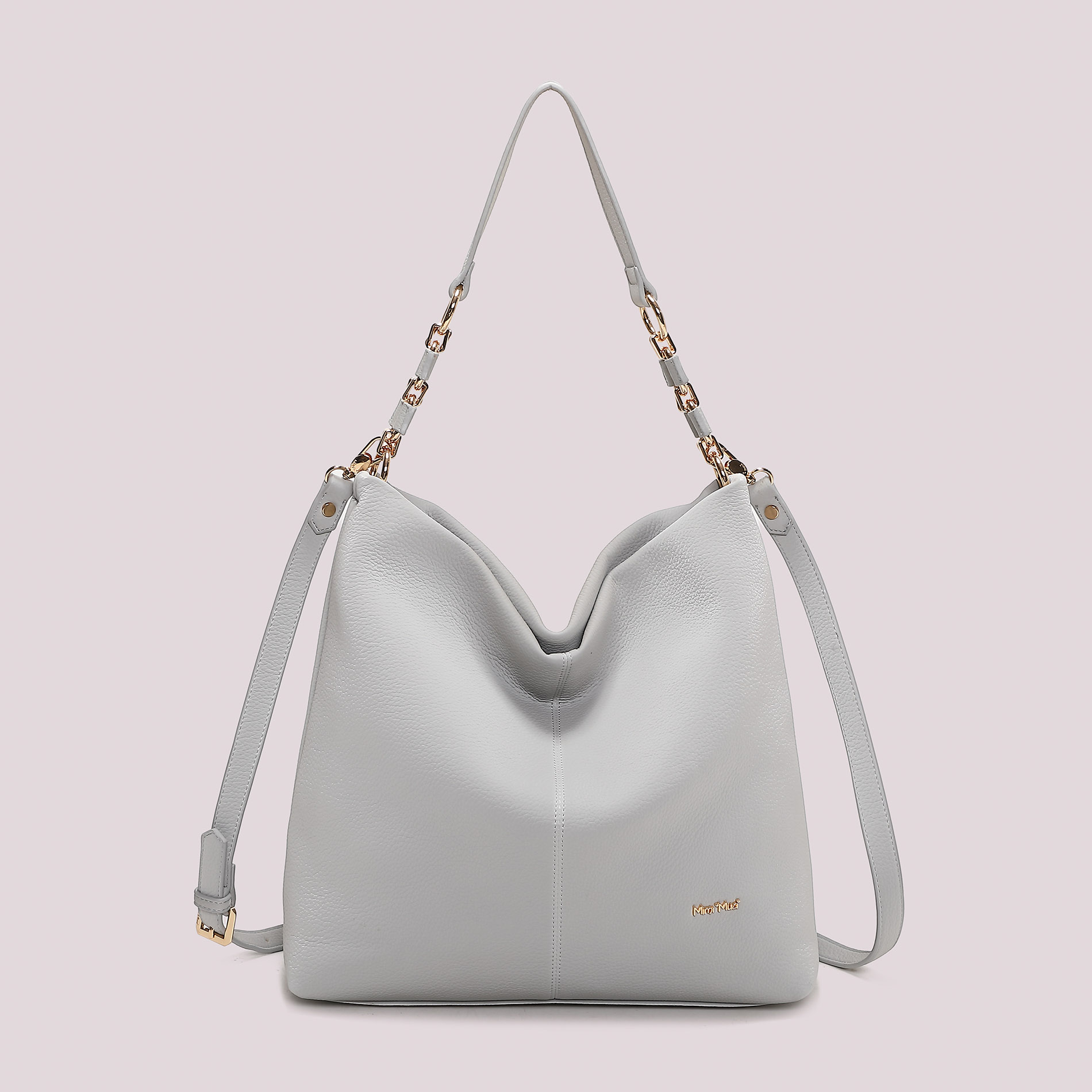 Borsa a spalla con catena sul manico-Grigio perla
